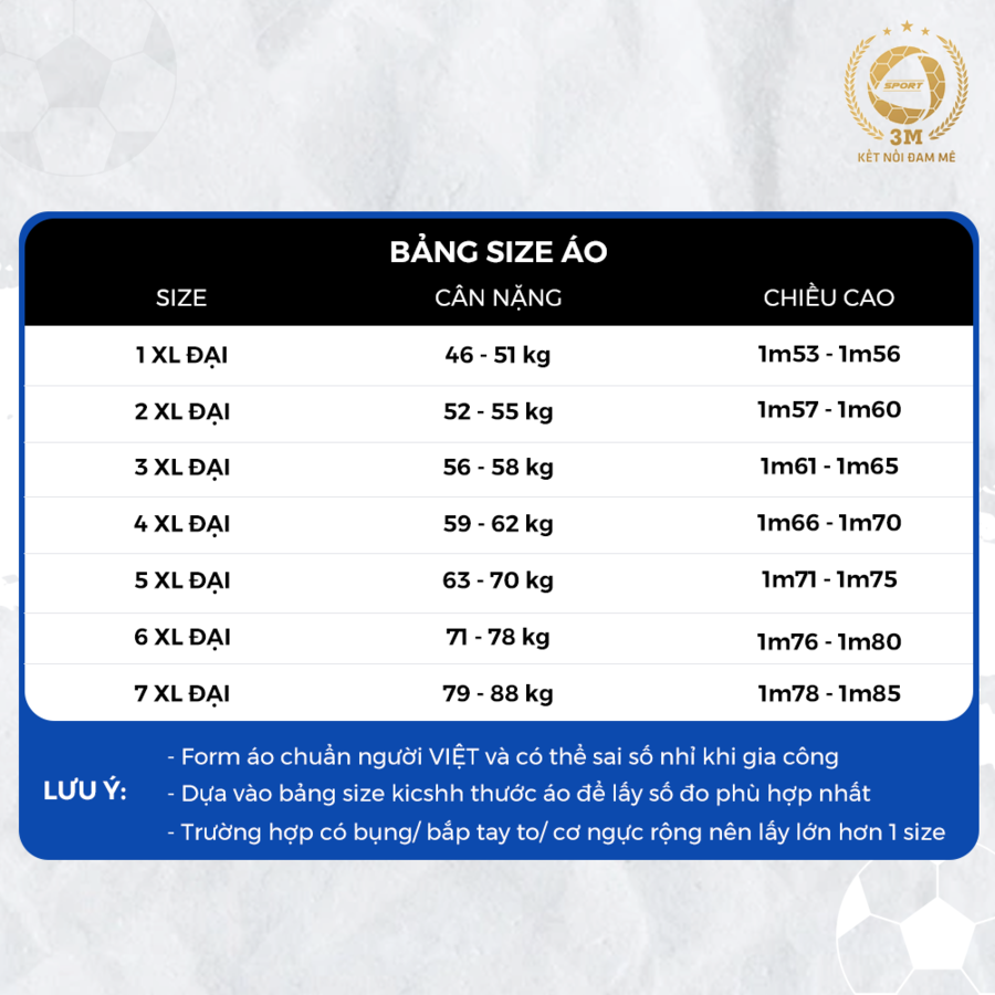 Đặt mua ngay những mẫu áo bóng đá mới nhất tại 3 Miền Sport với đầy đủ các Size từ 46kg - 85kg, cũng như các mẫu mã khác nhau để bạn có thể thoải mái lựa chọn.
